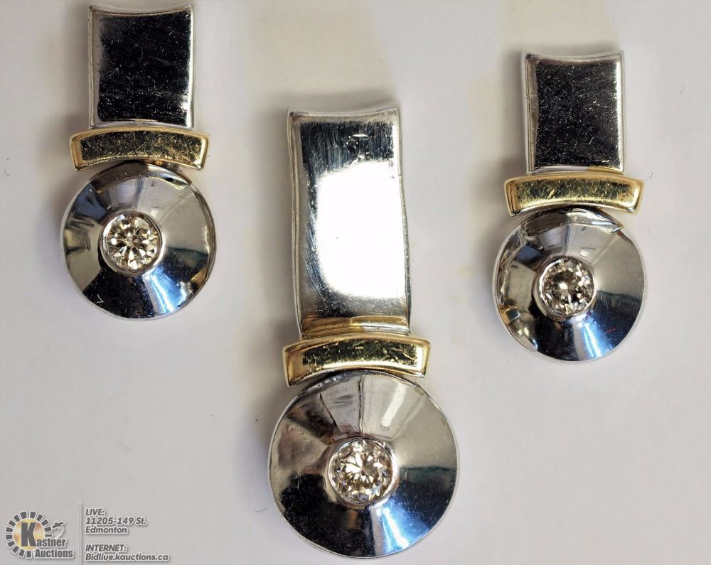 23 - GS15: 14KT YELLOW & WHITE GOLD CHAMPAGNE DIAMOND (0.16CT) APPROX. 6.00G PENDANT & EARRINGS SET W/ COA - SUGGESTED REPLACEMENT VALUE $2,495.00