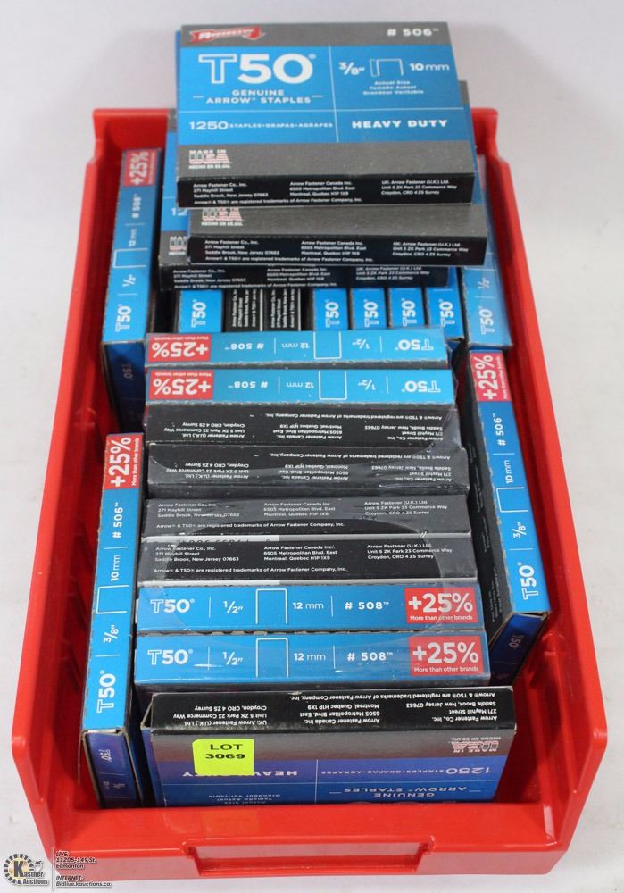 23 BOXES OF 1250 T50 ARROW 3/8"X10MM STAPLES