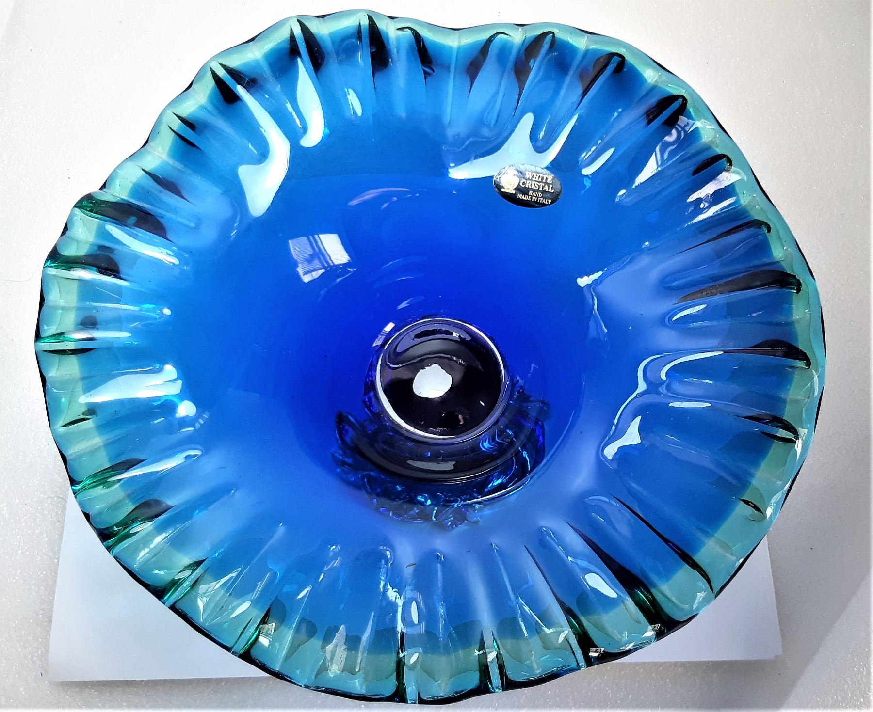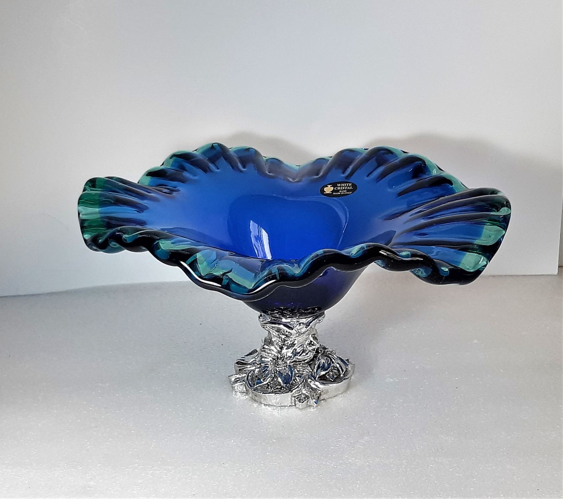 CRYSTAL WITH CARVED SILVER PLATED FOOT CANDY DISH, 5" IN HEIGHT & 10" DIAMETER. HOME DECOR