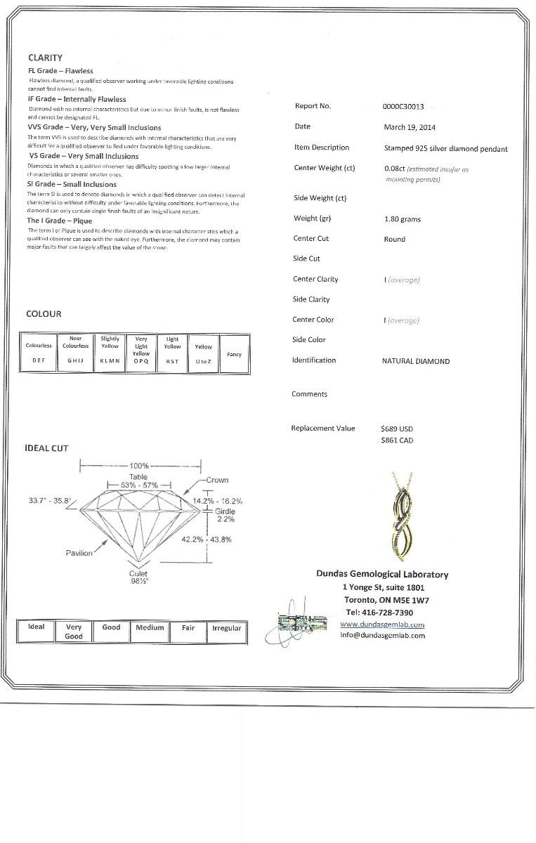 PENDANT NECKLACE. W/COA- SUGGESTED REPLACEMENT VALUE $861.00