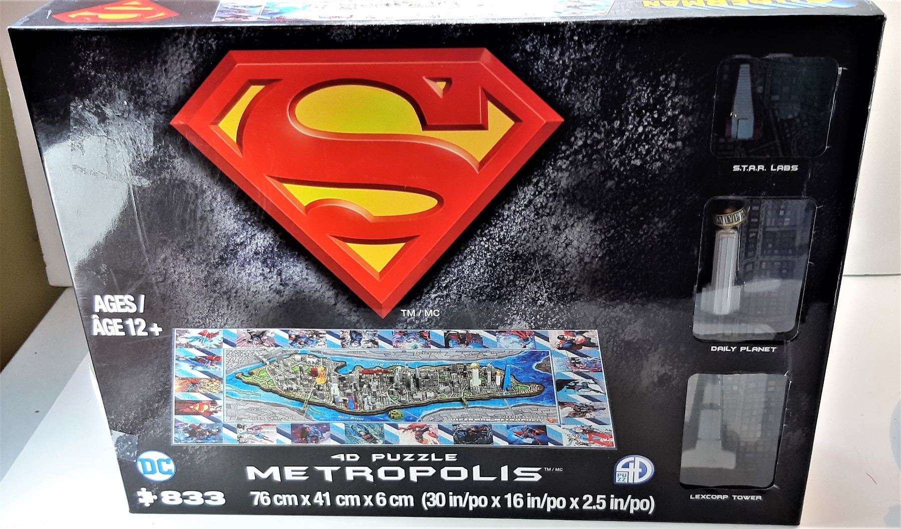PUZZLE WITH LAYER 1 JIGSAW MAP OF METROPOLIS, LAYER 2 JIGSAW TOPOGRAPHY MAP OF METROPOLIS AND 3D MODELS AND REPLICAS. TOYS