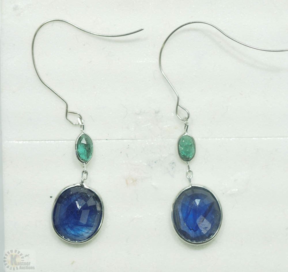14KT WHITE GOLD SAPPHIRE & EMERALD(8.70CT)EARRINGS W/ COA - SUGGESTED REPLACEMENT VALUE $1,880.00
