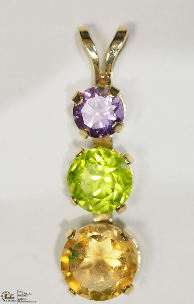 24 - BA25 - 14KT YELLOW GOLD AMETHYST, PERIDOT AND CITRINE PENDANT