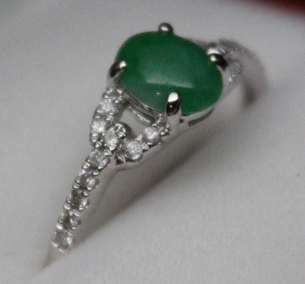 #24 18K GOLD JADE AND DIAMOND 0.12CT RING