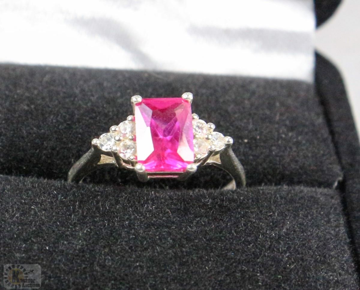 #24-.925 SILVER WITH PINK BIRTHSTONE SIZE 7