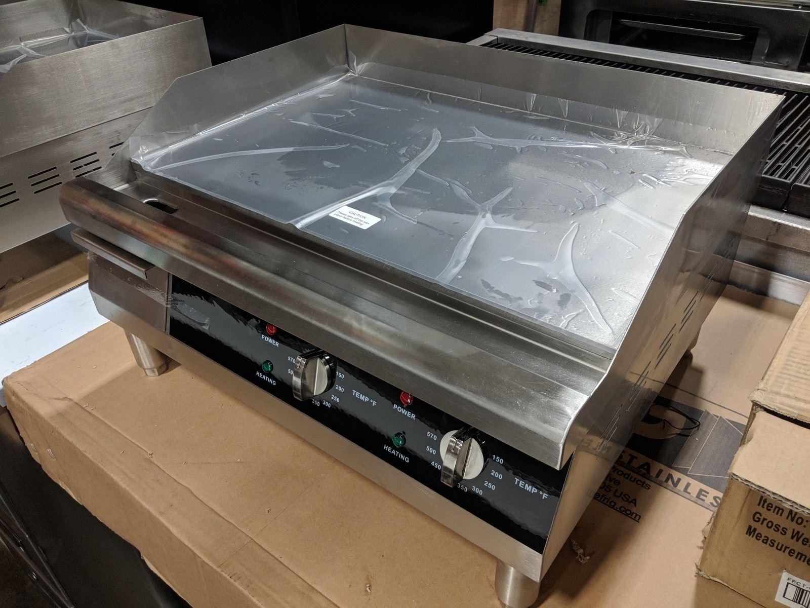 KW192 - NEW - 24" COUNTERTOP STAINLESS STEEL ELECTRIC GRIDDLE, 3560W, 220V, 24" X 15.5", OMCAN 43213