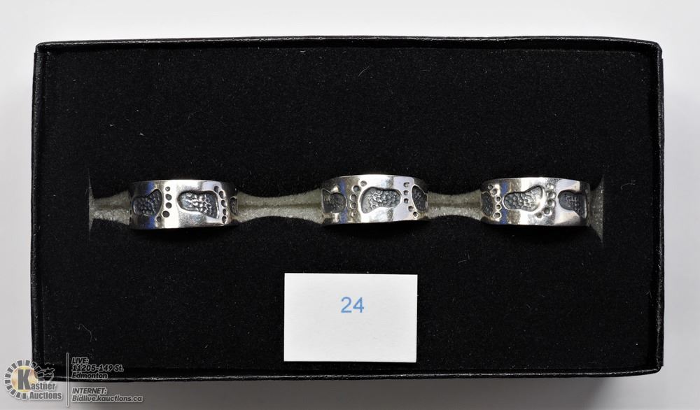 24 - MS3- LOT OF 3 STERLING SILVER RINGS WITH FOOT DESIGN, OPEN END. JEWELRY