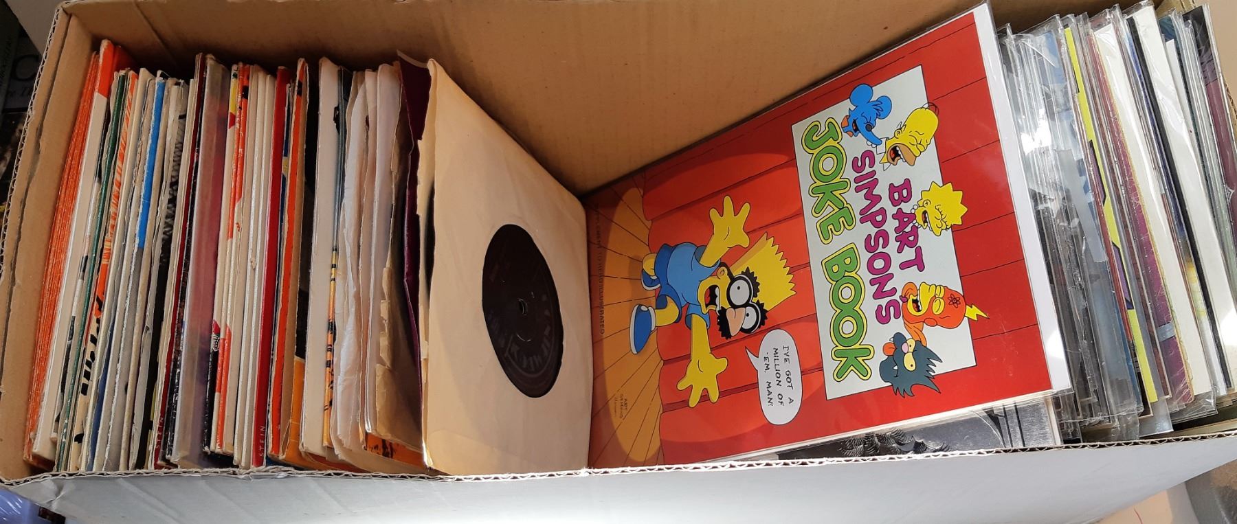PORTUGUESE 45 RPM RECORDS AND 34 VINTAGE COMICS. COLLECTIBLES