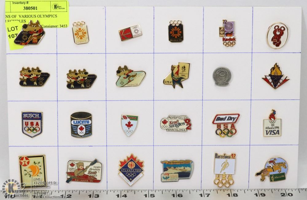 24 PINS OF VARIOUS OLYMPICS COLLECTIBLES