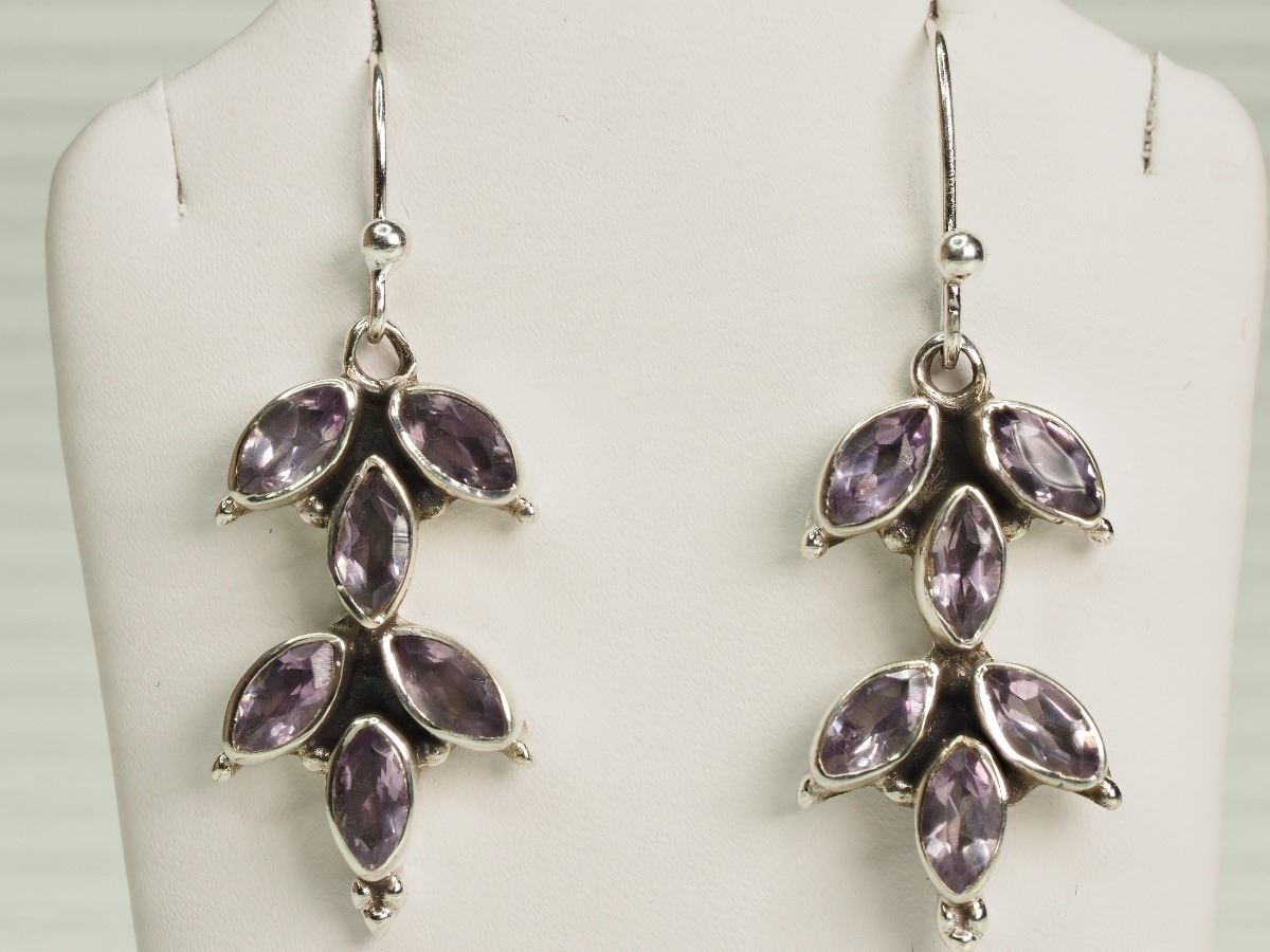 #24-STERLING SILVER AMETHYST DROP EARRINGS