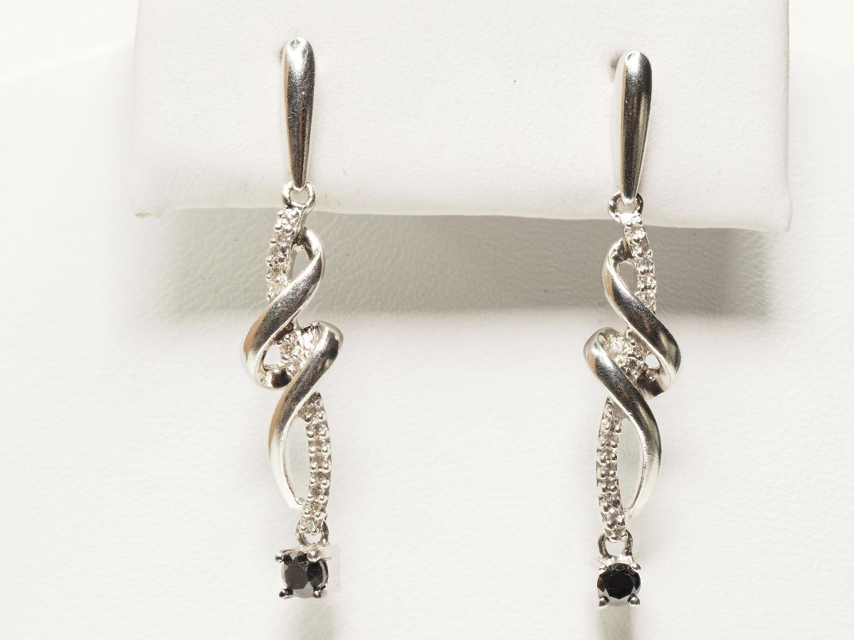 STERLING SILVER BLACK DIAMOND(0.14CT) & WHITE DIAMOND(0.10CT) EARRINGS. W/ COA SUGGESTED REPLACEMENT VALUE $555.00