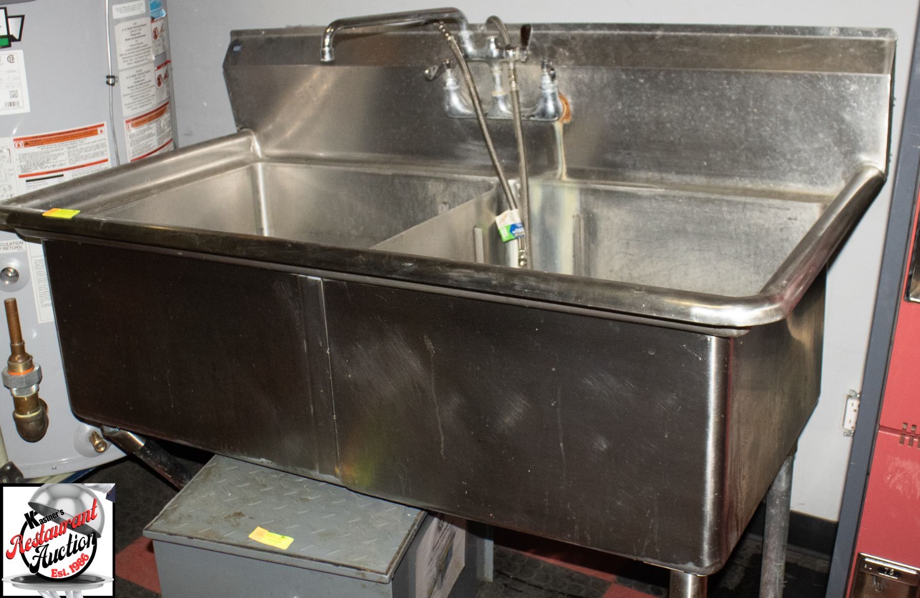 PRE RINSE, WELLS MEASURE 24" X 24" X 14" TOTAL SIXE MEASURES 54" X 30" X 36", * DAMAGED TO THE LEGS WILL NEED REPLACING ****ALL EQUIPMENT WILL HAVE A 15 DAY WARRANTY, STARTING AT THE END OF THE AUCTION. SUBJECT TO TERMS AND CONDITIONS, MUST HAVE A PROOF OF A NON WORKING ITEM. ***