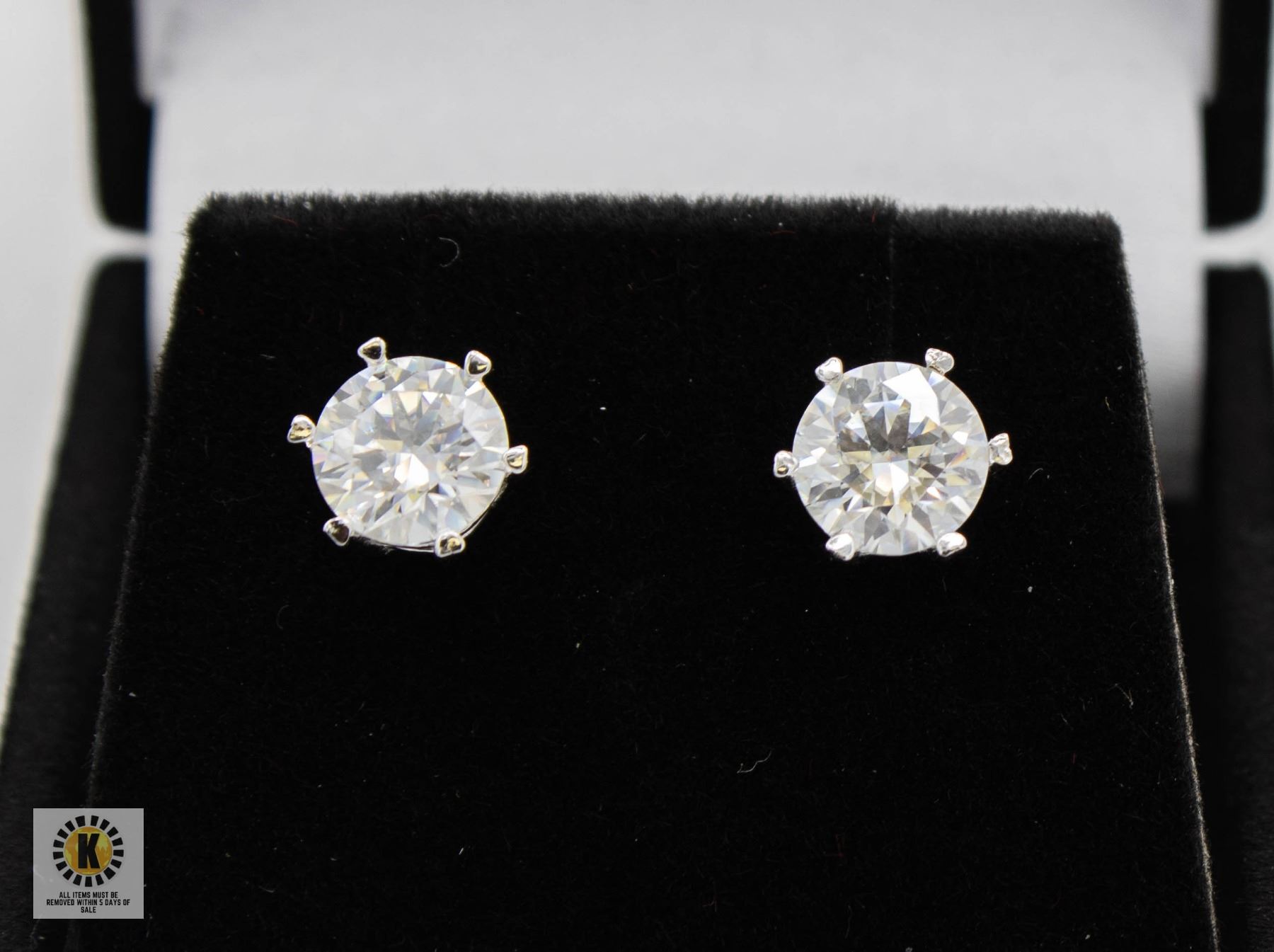 STONES VVS D COLOR SET IN 6 CLAW HEAD SET IN 925 SILVER EARRINGS RETAIL VALUE $825.00 **ALL ITEMS MUST BE REMOVED BY 5PM SATURDAY, APRIL 5TH 2025. ALL REMAINING ITEMS WILL BE SUBJECT TO A $6.00 PER DAY STORAGE CHARGE. ANY ITEMS REMAINING AFTER MONDAY, MAY 5TH 2025 WILL BE CONSIDERED FORFEITED. NO REFUNDS WILL BE ISSUED FOR FORFEITED ITEMS. TO SCHEDULE A PICK UP APPOINTMENT CLICK HERE