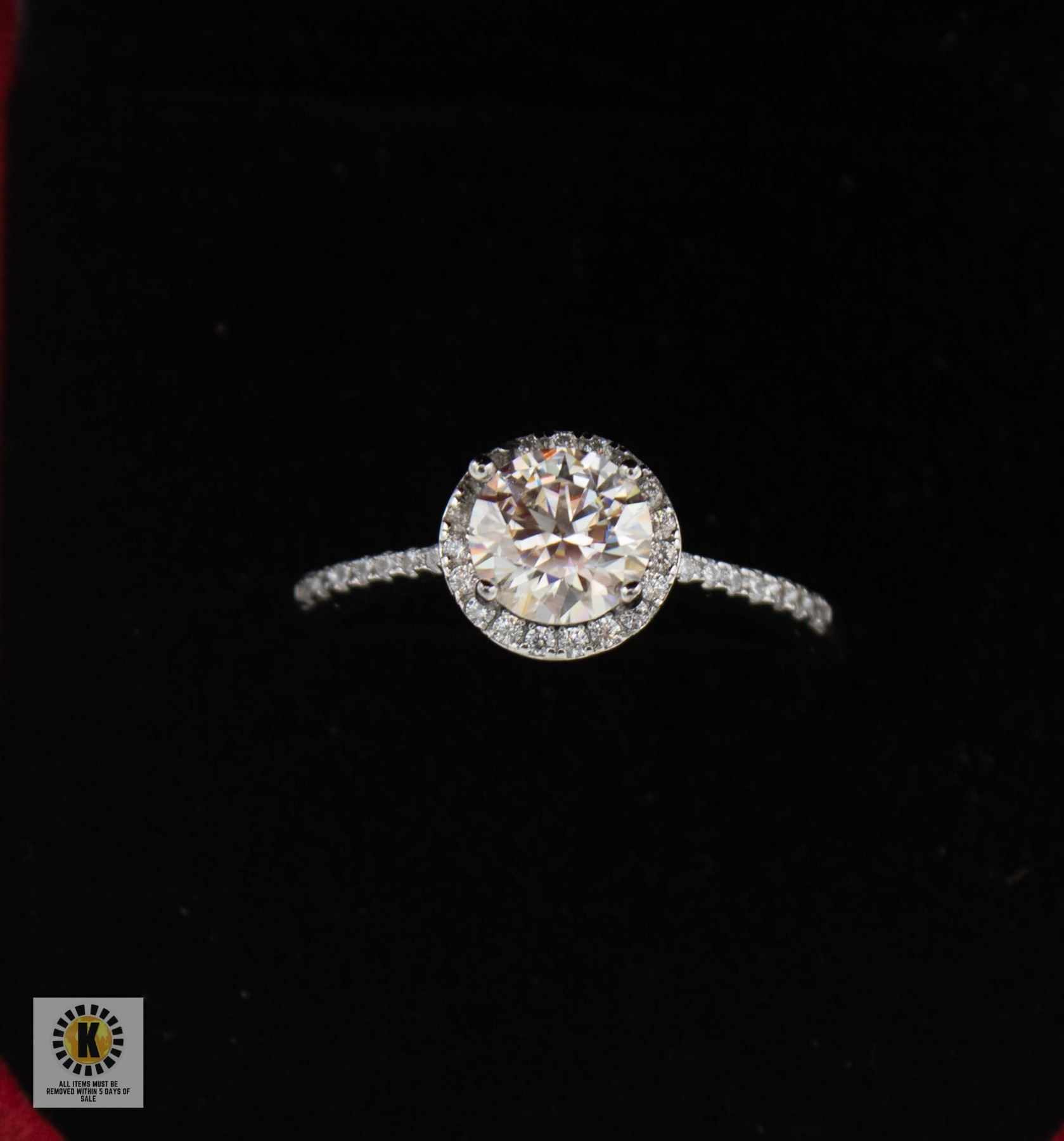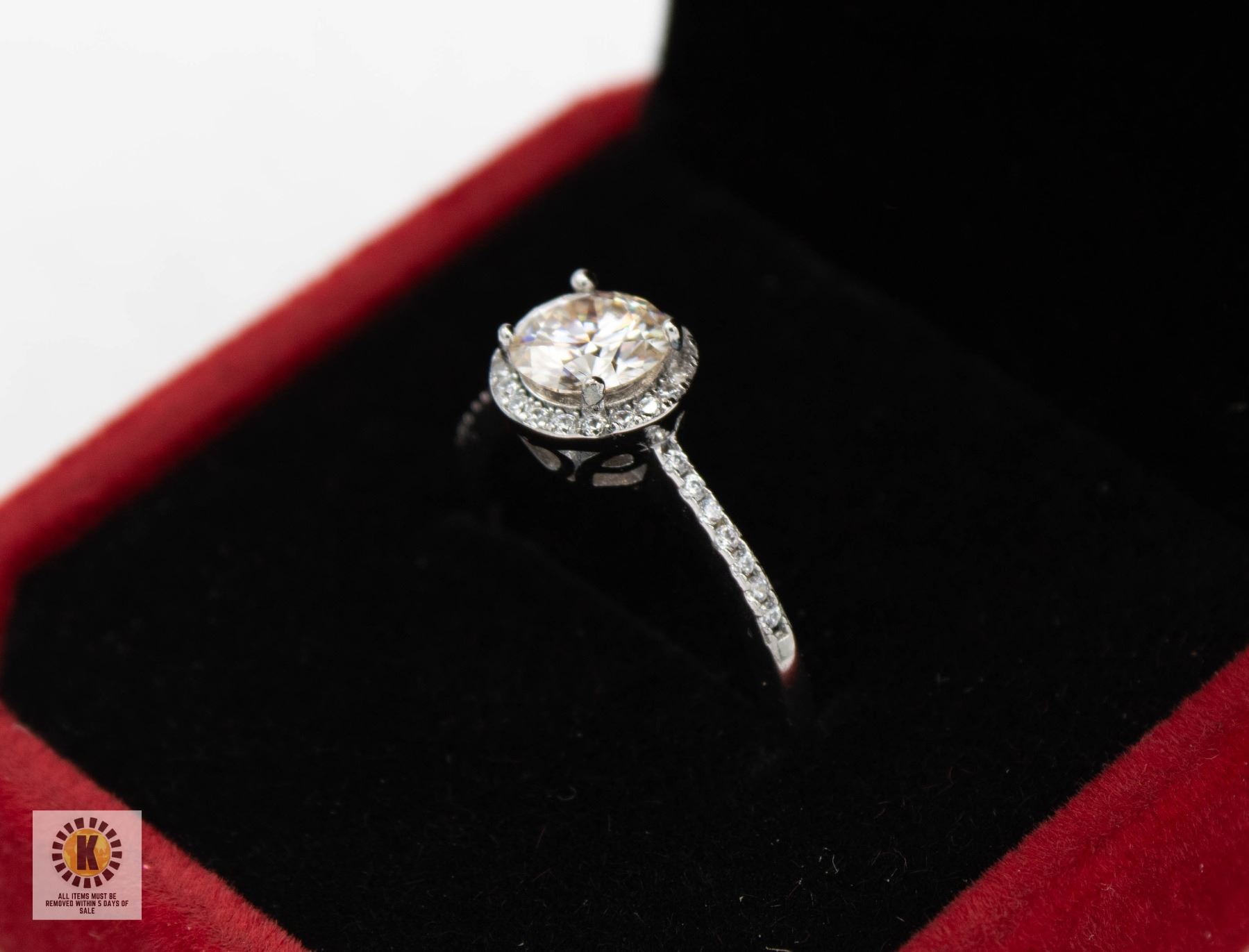 STONES VVS D COLOR WITH 20 ROUND BRILLIANT CUT CUBIC ZIRCONIA SET IN ROUND HALO WITH 14 SET IN SHANKS SET IN 925 SILVER RING SIZE ADJUSTABLE **ALL ITEMS MUST BE REMOVED BY 5PM SATURDAY, APRIL 5TH 2025. ALL REMAINING ITEMS WILL BE SUBJECT TO A $6.00 PER DAY STORAGE CHARGE. ANY ITEMS REMAINING AFTER MONDAY, MAY 5TH 2025 WILL BE CONSIDERED FORFEITED. NO REFUNDS WILL BE ISSUED FOR FORFEITED ITEMS. TO SCHEDULE A PICK UP APPOINTMENT CLICK HERE