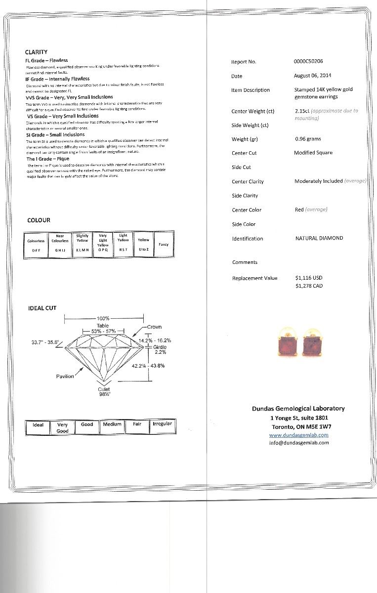 14K YELLOW GOLD RUBY(2.15CT) EARRINGS. W/ COA- SUGGESTED REPLACEMENT VALUE $1278