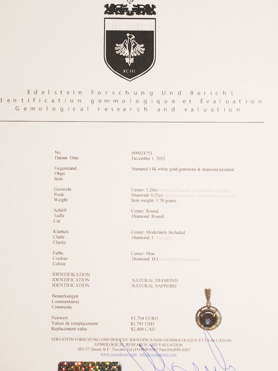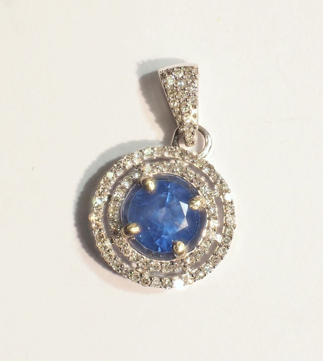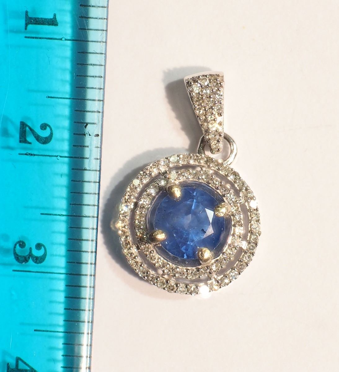 14K GOLD SAPPHIRE(1.20CT) W/ 73 DIAMONDS PENDANT ACCENTED BY 73 SINGLE CUT DIAMONDS SUGGESTED REPLACEMENT VALUE $2,400.00