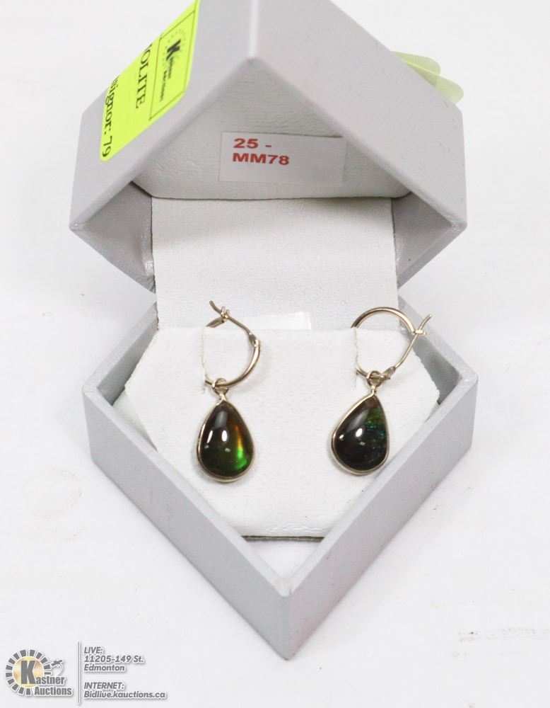 25 - MM78 - 14K YELLOW GOLD AMMOLITE EARRINGS, MADE IN CANADA. JEWELLERY