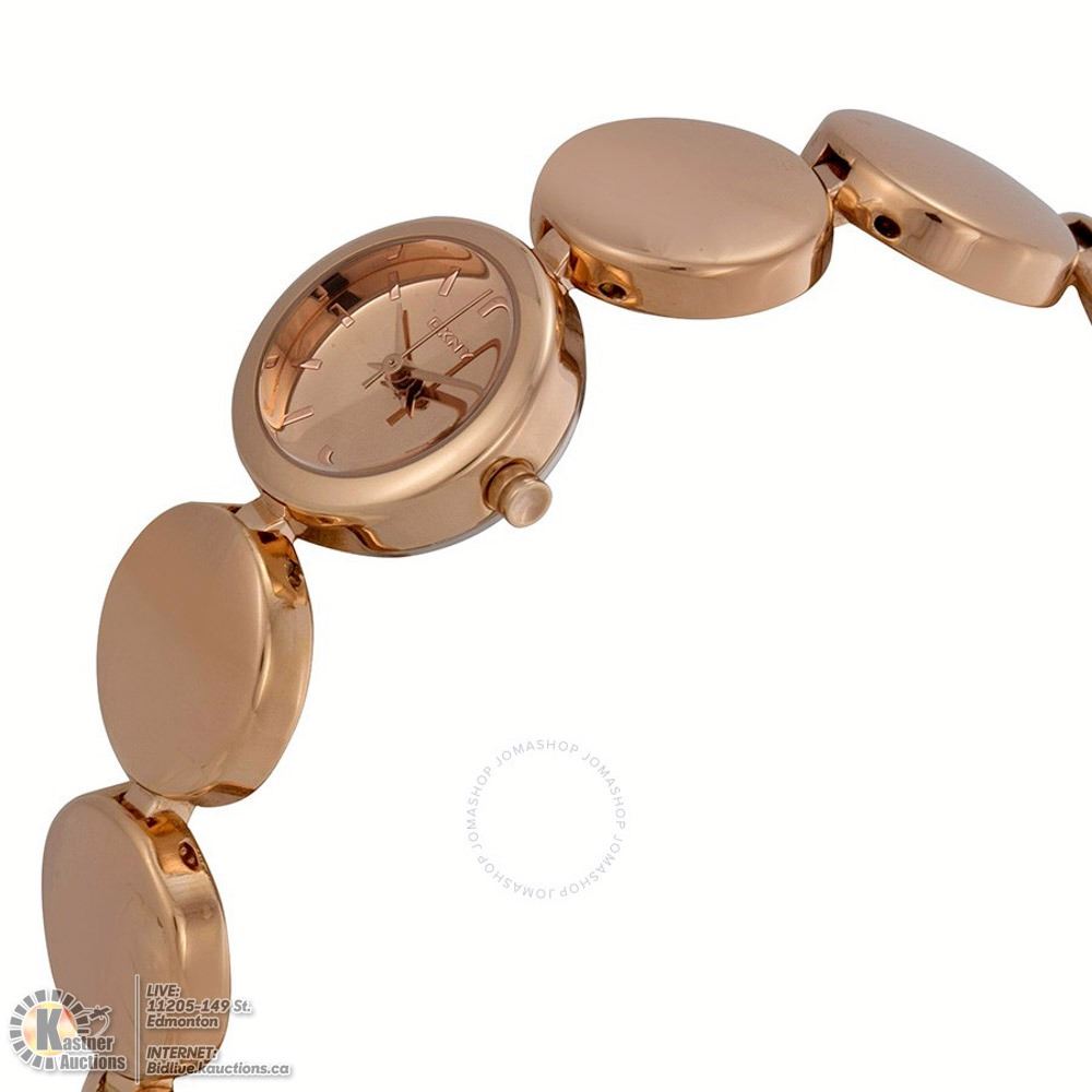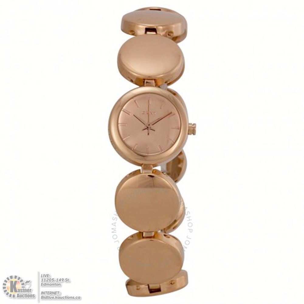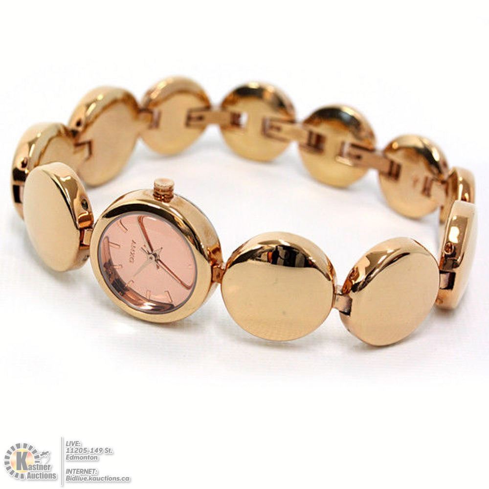 (25 - GS26)ROSE GOLD-TONE ANALOG DIAL LADIES WATCH. SOME SCRATCHES ON BAND
