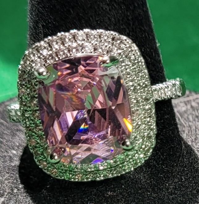 A PALE PINK CUSHION CUT ZIRCON SIZE 8 RING
