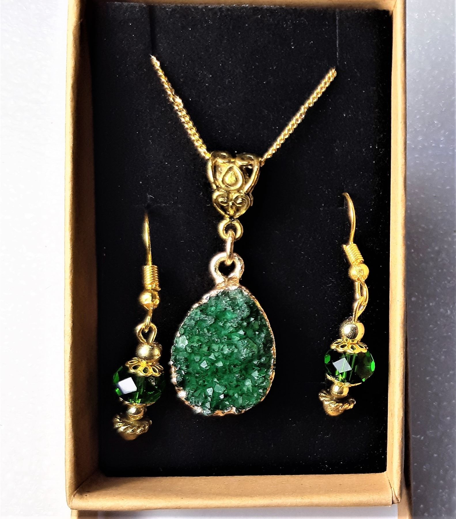 ON A 20" CHAIN WITH COORDINATING SWAROVSKI CRYSTAL DROP EARRINGS ON FISH OOKS. JEWELRY