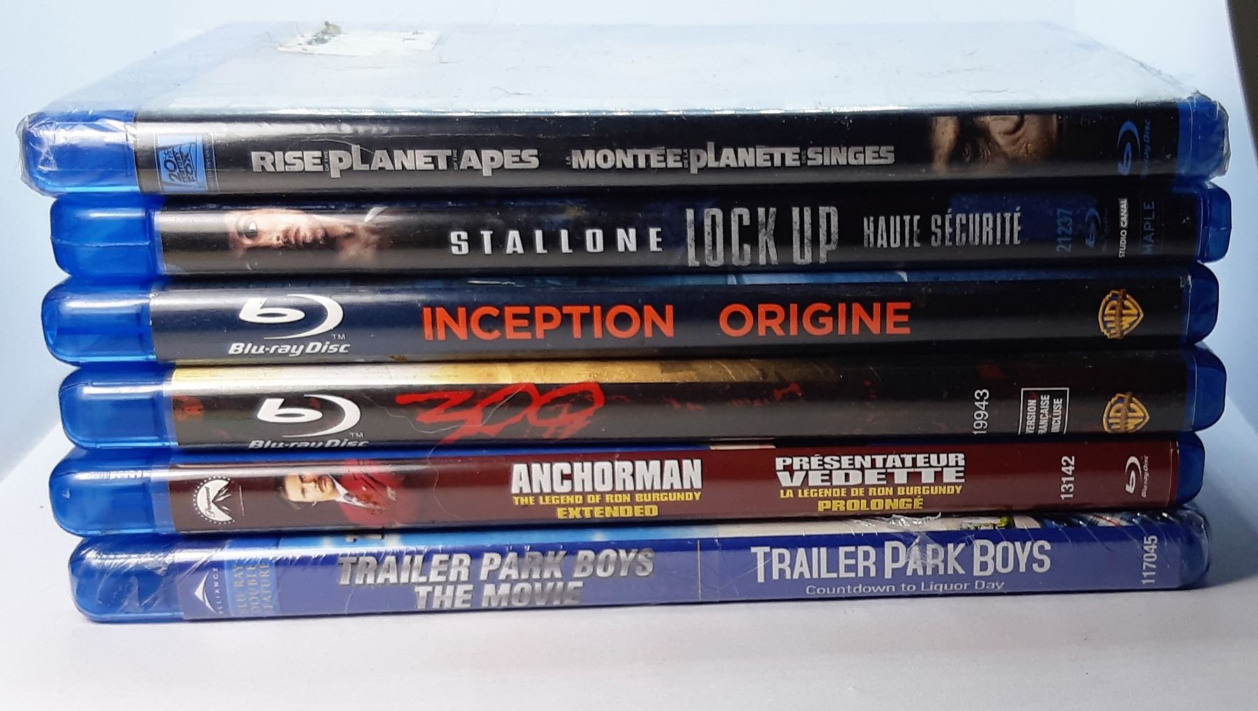 INCLUDES 2 FACTORY SEALED, RISE OF PLANET OF THE APES, TRAILER PARK BOYS, ANCHORMAN, INCEPTION, 300 AND LOCKUP. ENTERTAINMENT
