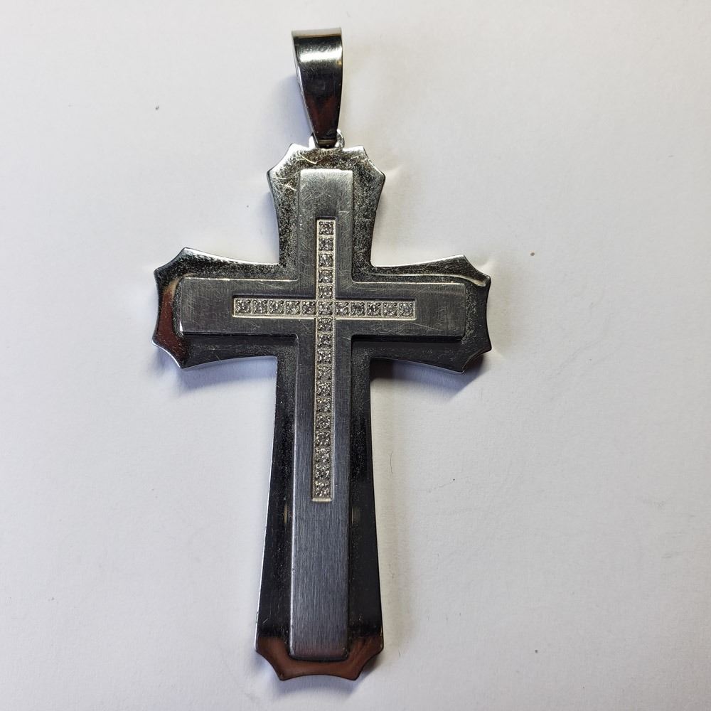 25 - JM37 - MEN'S STAINLESS STEEL WITH 28 DIAMONDS PENDANT. JEWELRY
