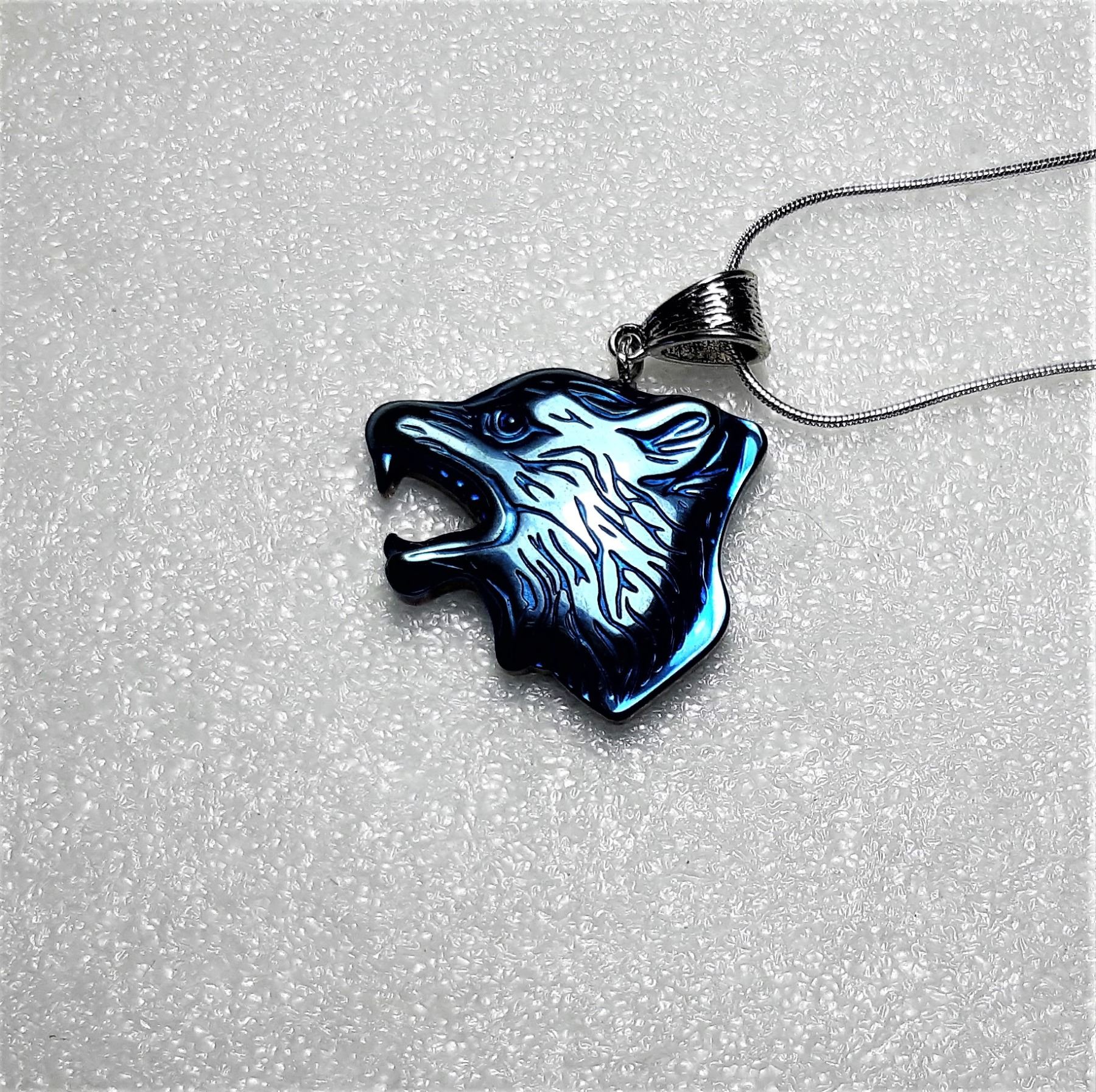 WOLF'S HEAD PENDANT ON 18" SNAKE CHAIN, MEASURING 1.5" X 2". JEWELRY
