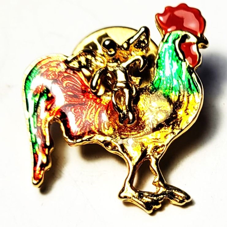 25) RED, YELLOW, GREEN ENAMEL ANGEL/ROOSTER LAPEL