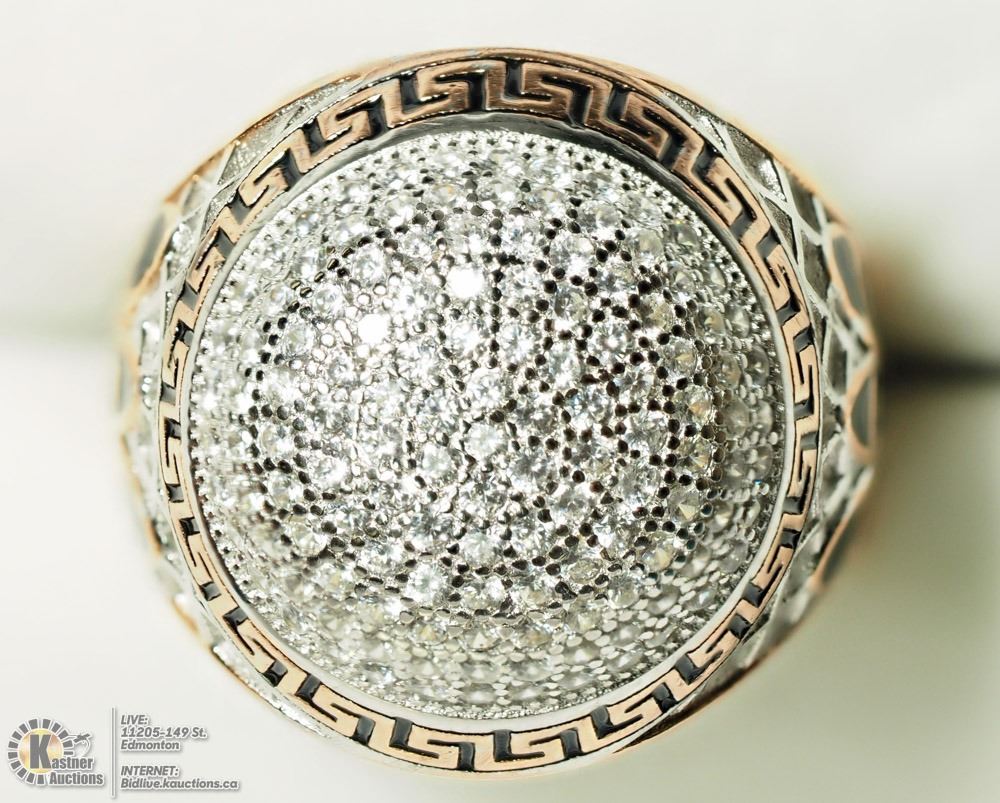 25-JP15 - STERLING SILVER CZ MEN'S RING SIZE 8.75. JEWELRY