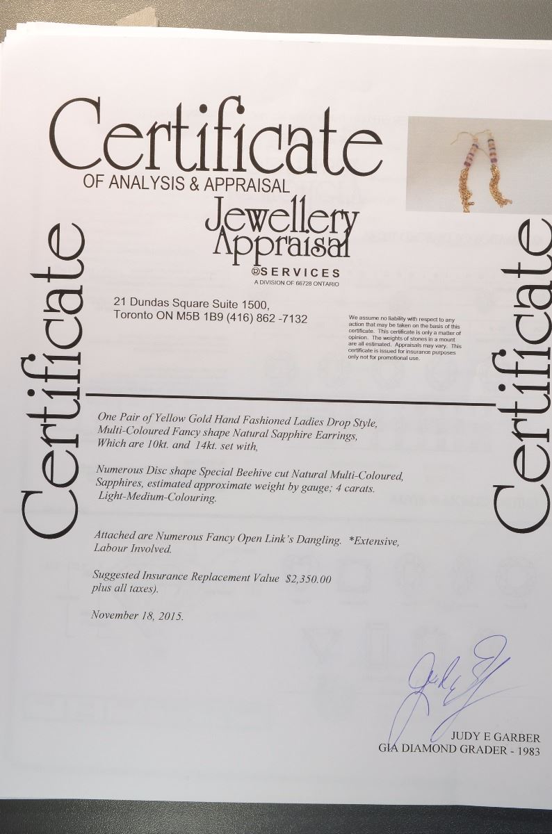 EARRINGS W/ COA - SUGGESTED REPLACEMENT VALUE $2,350.00