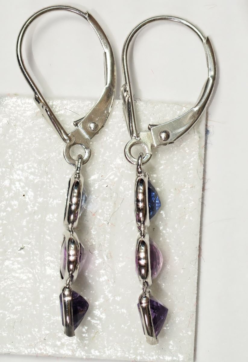 14K WHITE GOLD FANCY COLOUR SAPPHIRE(3.0CT) EARRINGS. W/ COA - SUGGESTED REPLACEMENT VALUE $2,750.00