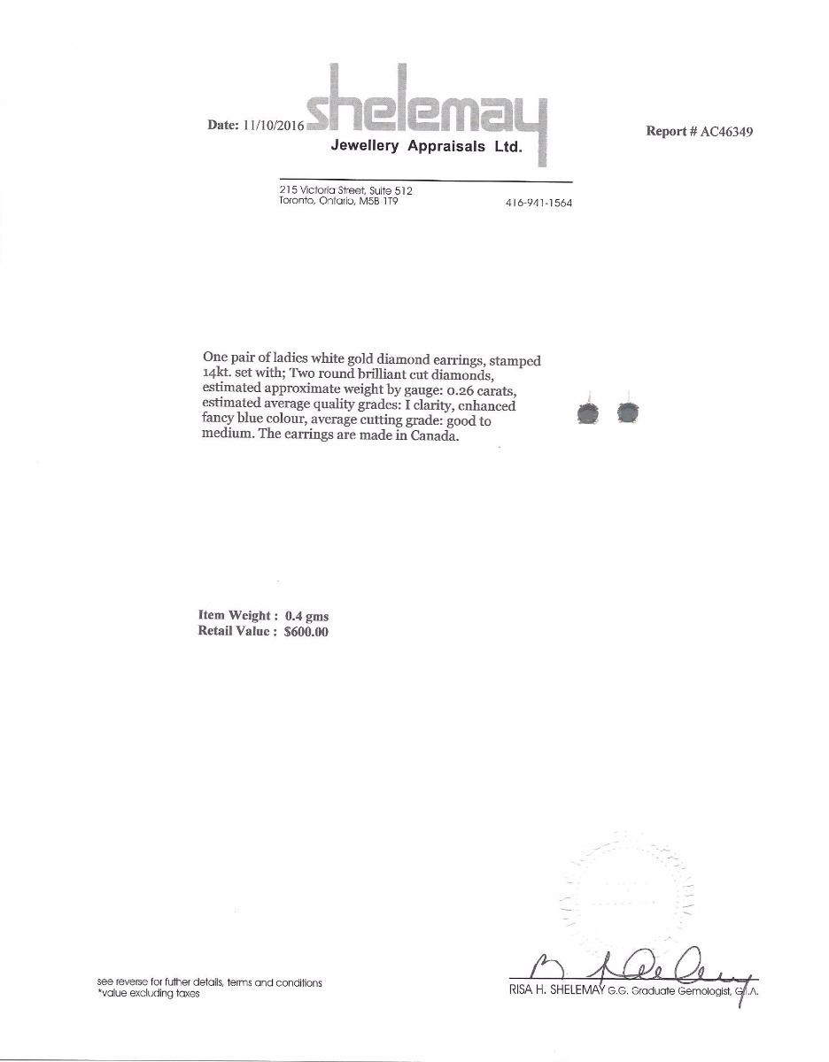 EARRINGS. WITH COA - SUGGESTED RETAIL VALUE $600.00