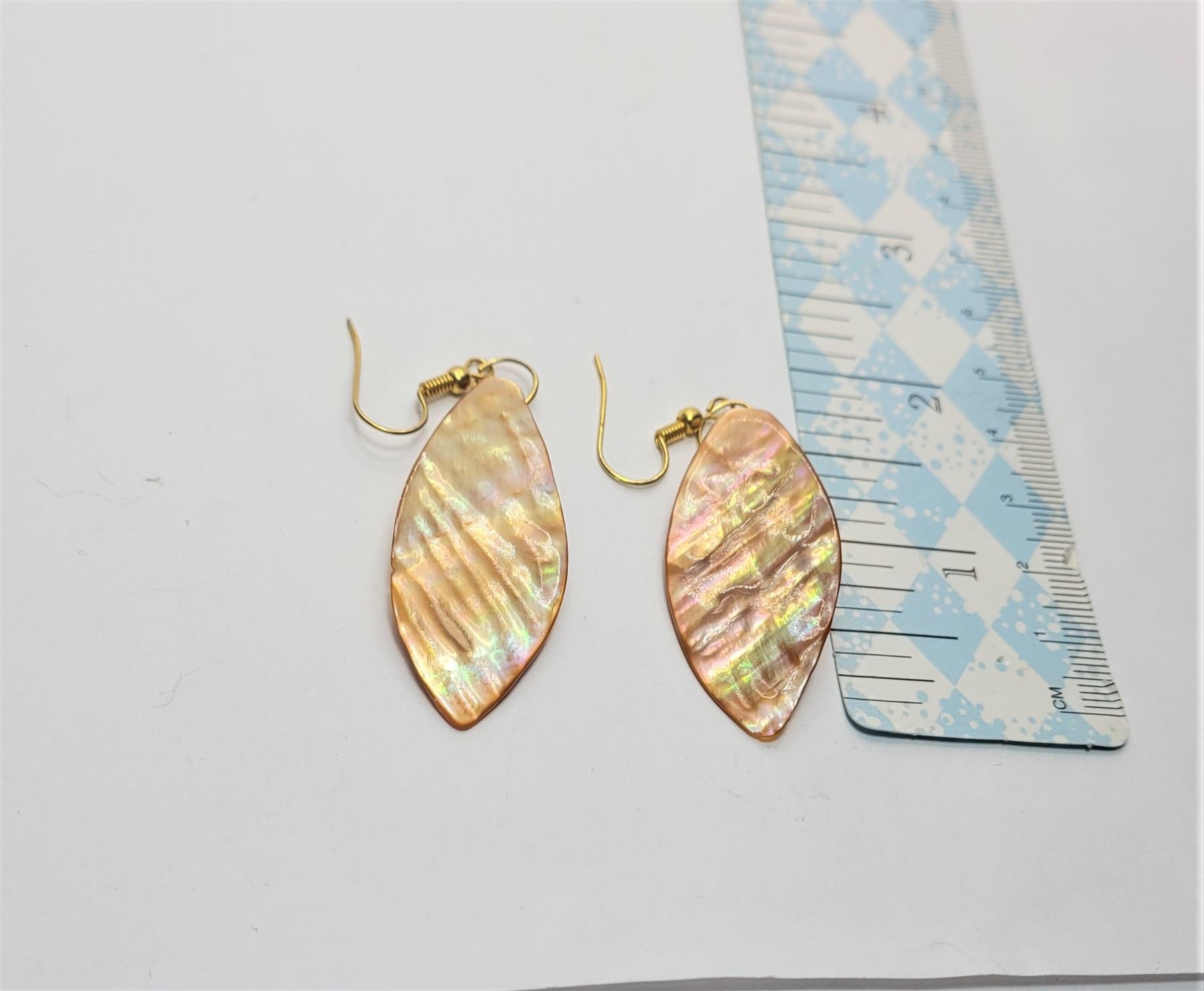 EARRINGS ON GOLD TONE NICKLE FREE FISH HOOK WIRES.