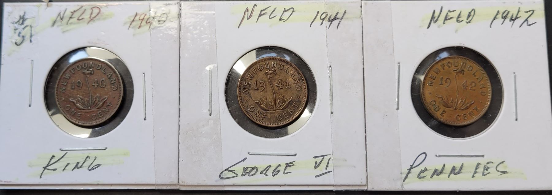 26) LOT OF 3 NEWFOUNDLAND KING GEORGE VI PENNIES,