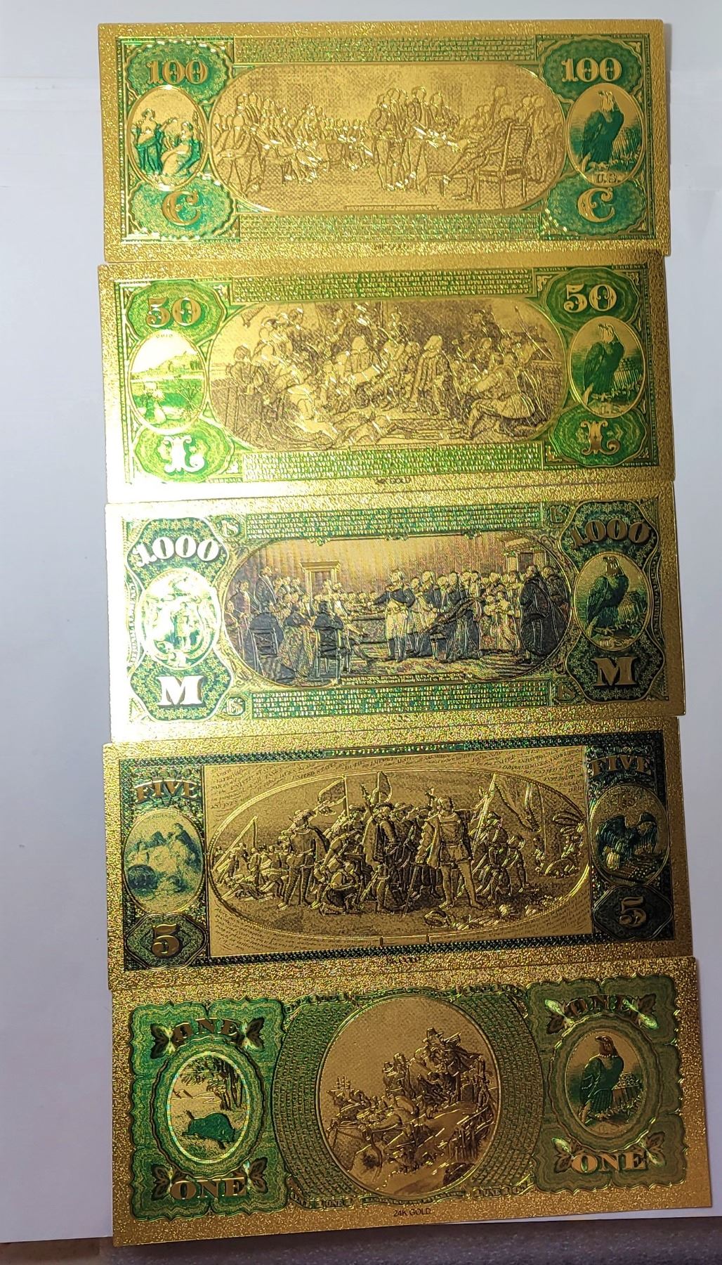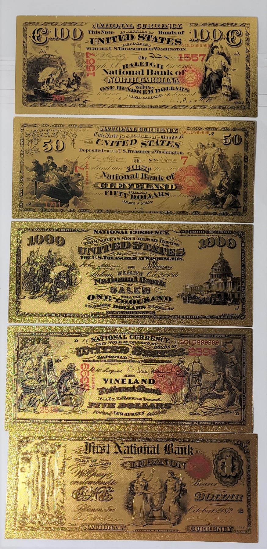 26) LOT OF 5 24K GOLD FOIL US 1886 BANKNOTES,