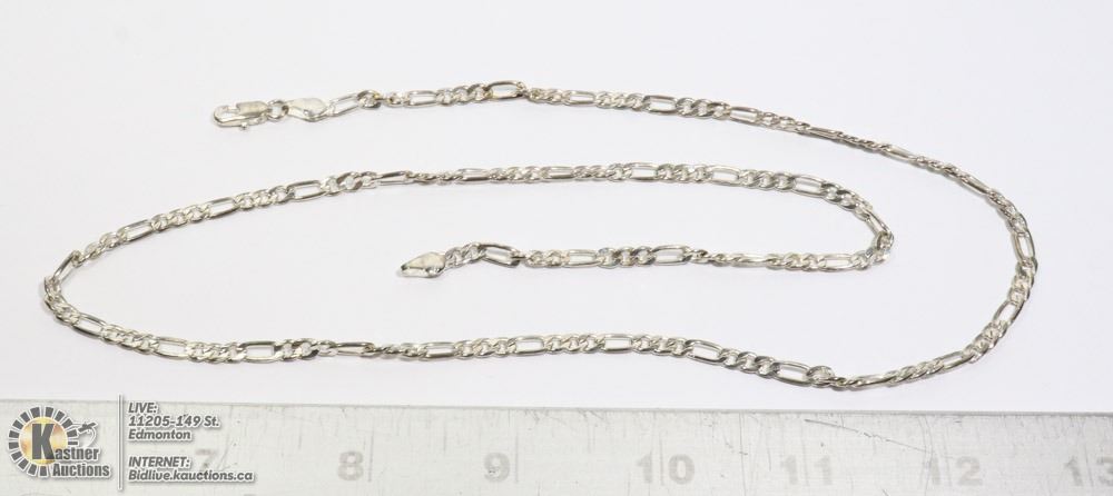 925 SILVER NECKLACE. 26" LONG AND SHORT STYLE CHAIN. 14 GRAMS. WITH LOBSTER CLASP.