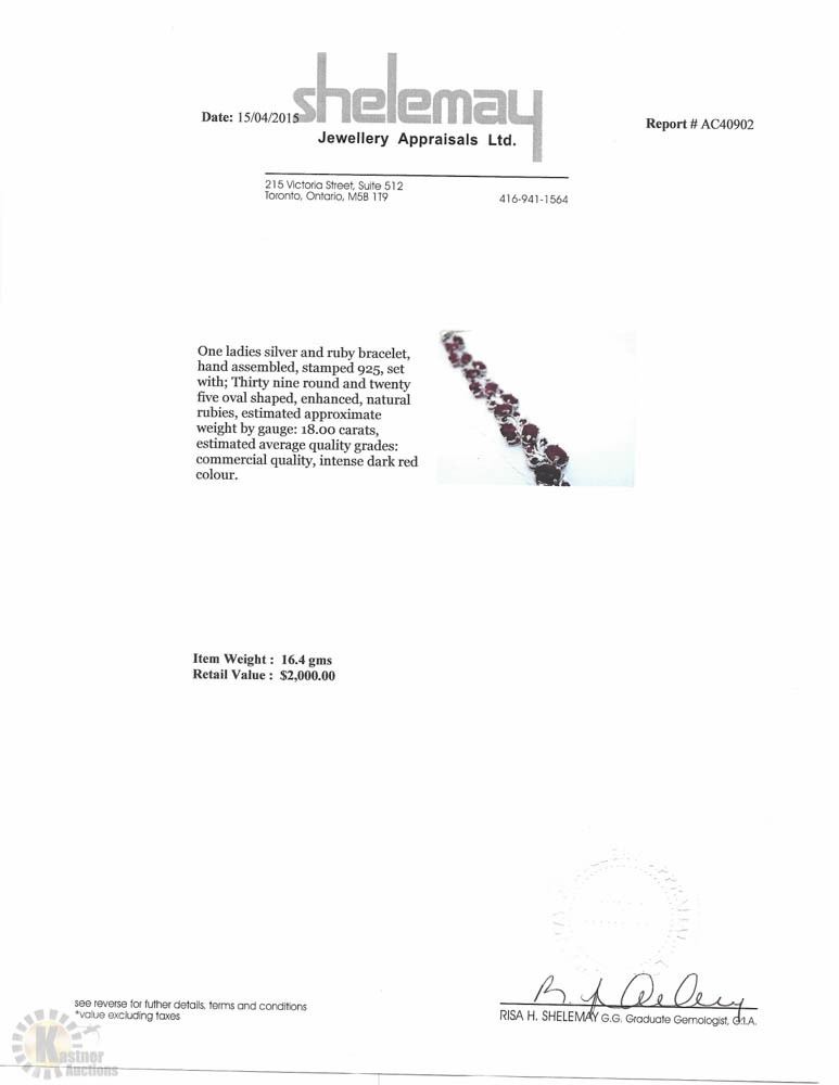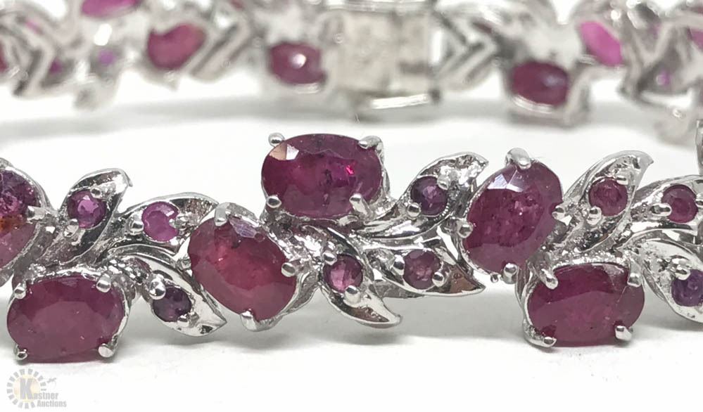 STERLING SILVER RUBY(18.0CT) BRACELET. W/ COA - SUGGESTED RETAIL VALUE $2,000.00