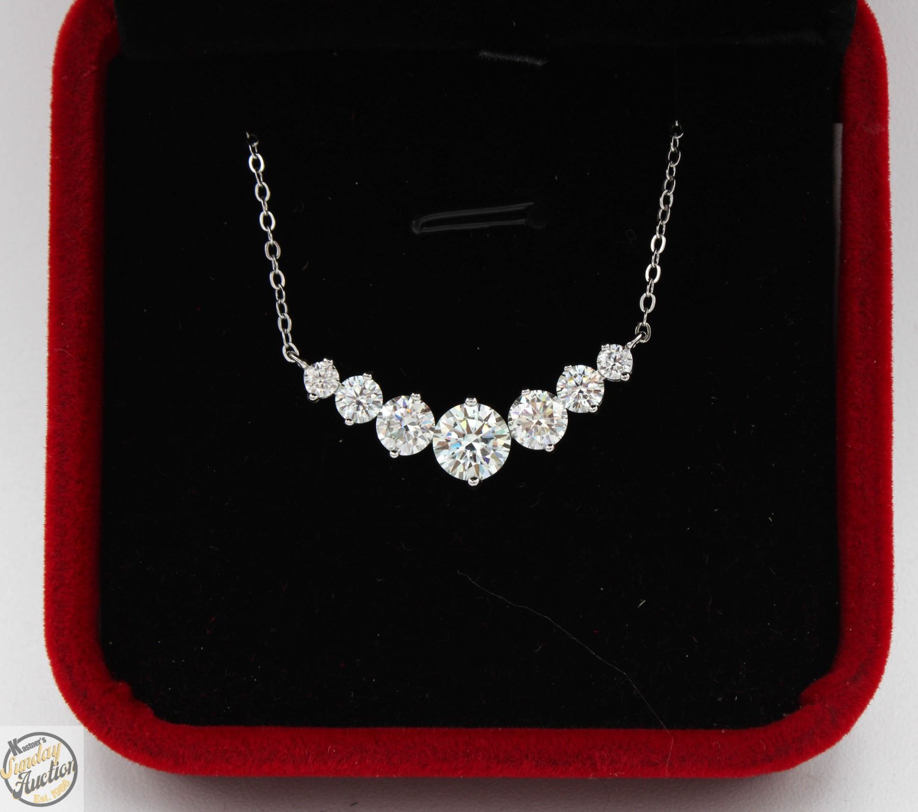 MOISSANITE STONES VVS D COLOR WITH THE CENTER STONE BEING 1.00 CT WITH 3 MORE GRADUATING DOWN IN SIZE ON EACH SIDE OF THE CENTER SET IN 925 SILVER PENDANT RETAIL VALUE $975.00 **ALL ITEMS MUST BE REMOVED BY 5PM SATURDAY, MAY 31ST 2025. ALL REMAINING ITEMS WILL BE SUBJECT TO A $6.00 PER DAY STORAGE CHARGE. ANY ITEMS REMAINING AFTER MONDAY, JUNE 16TH 2025 WILL BE CONSIDERED FORFEITED. NO REFUNDS WILL BE ISSUED FOR FORFEITED ITEMS. TO SCHEDULE A PICK UP APPOINTMENT CLICK HERE