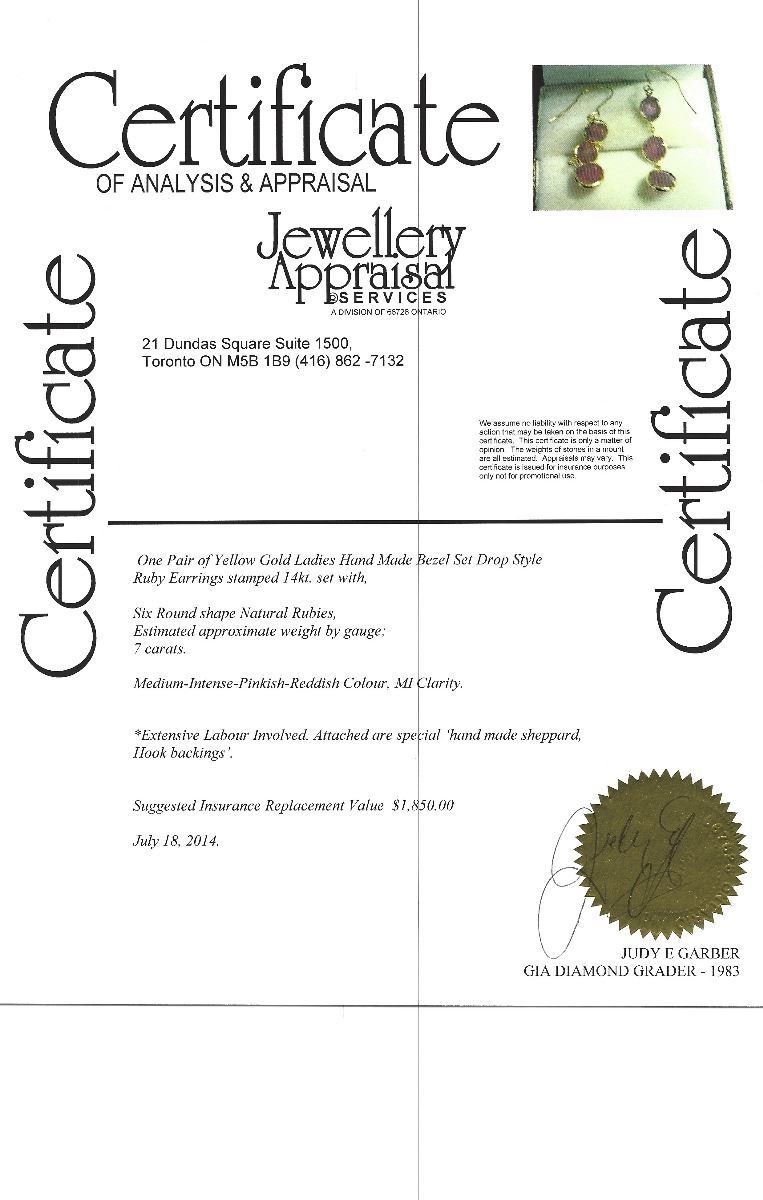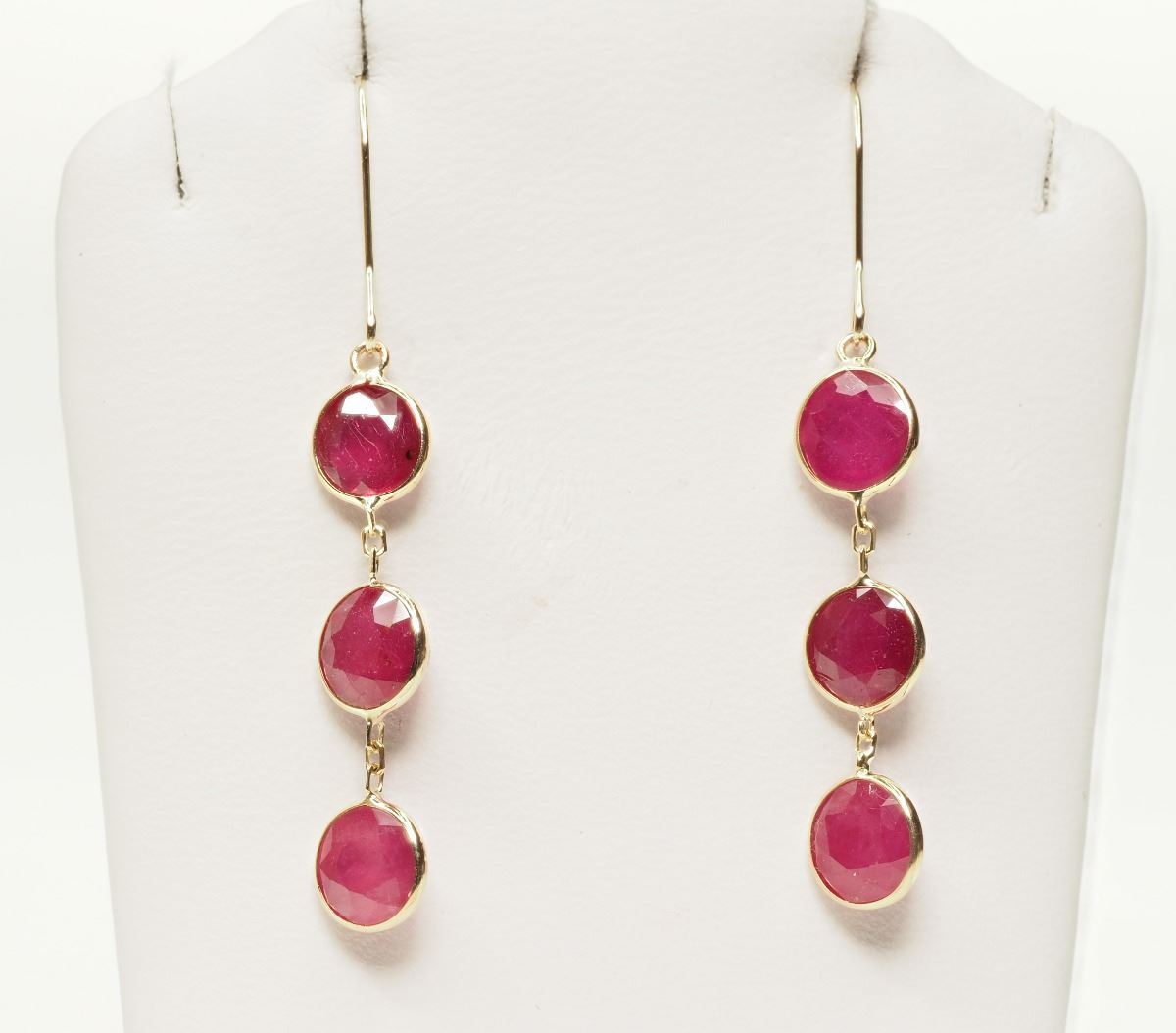 14K YELLOW GOLD RUBY(7.9CT) EARRINGS. W/ COA- SUGGESTED REPLACEMENT VALUE $1850
