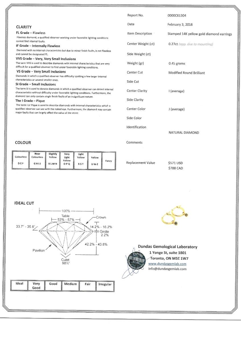 #27-14K YELLOW GOLD DIAMOND HOOP EARRINGS