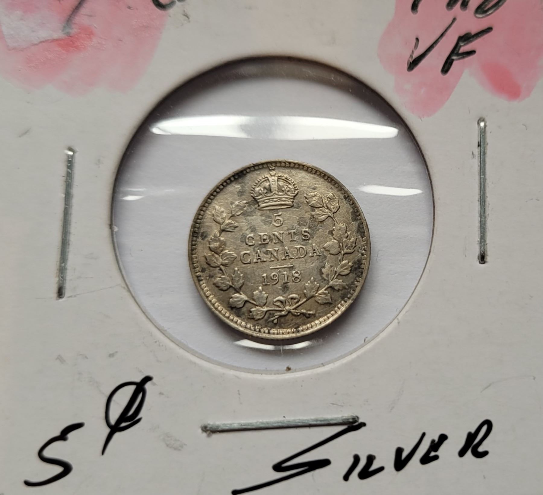 27) CANADIAN 1918 92.5% SILVER SMALL NICKLE.
