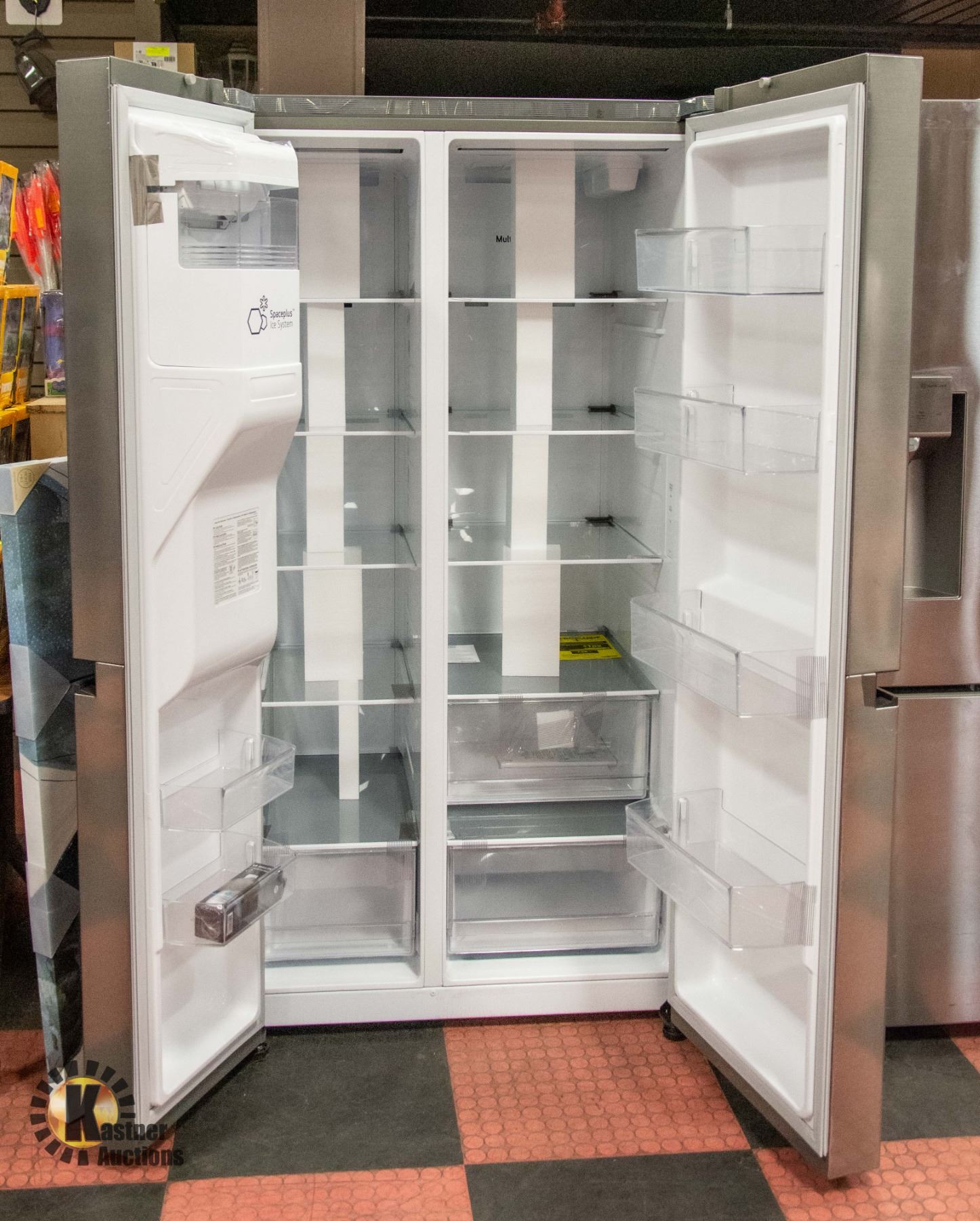 MODEL LRSZS2706V/01 SERIAL 301MRGC0U399. SCRATCH AND DENT, H-70.25" W-33" L-36" **ALL ITEMS MUST BE REMOVED BY 5PM SATURDAY, JUNE 24TH 2023. ALL REMAINING ITEMS WILL BE SUBJECT TO A $6.00 PER DAY STORAGE CHARGE. ANY ITEMS REMAINING AFTER MONDAY, JULY 10TH, 2023 WILL BE CONSIDERED FORFEITED. NO REFUNDS WILL BE ISSUED FOR FORFEITED ITEMS. TO SCHEDULE A PICK UP APPOINTMENT CLICK HERE