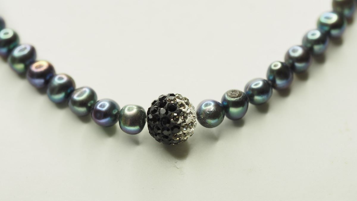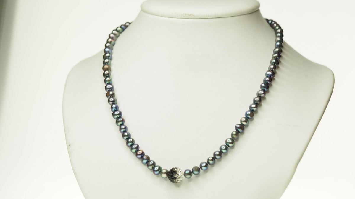 STERLING SILVER CLASP FRESHWATER PEARL & CUBIC CRYSTAL NECKLACE