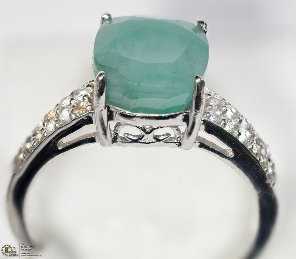 27 - BA25 - STERLING SILVER GENUINE EMERALD & CUBIC ZIRCONIA RING SIZE 6