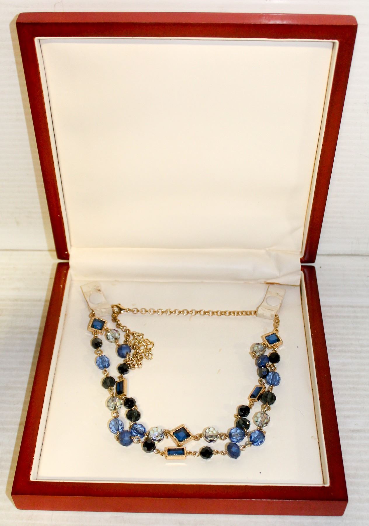 DOUBLE STRAND 25" NECKLACE IN WOODEN JEWELLERY BOX. JEWELLERY