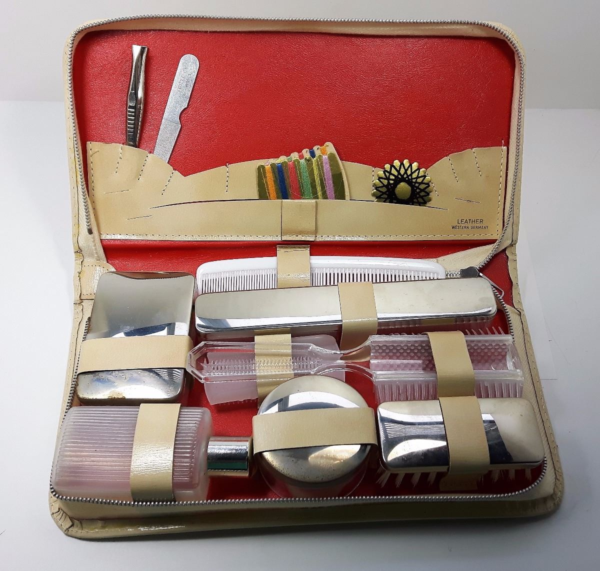 MADE IN POST WAR GERMANY, INCLUDES SEWING KIT & COSMETIC CASES