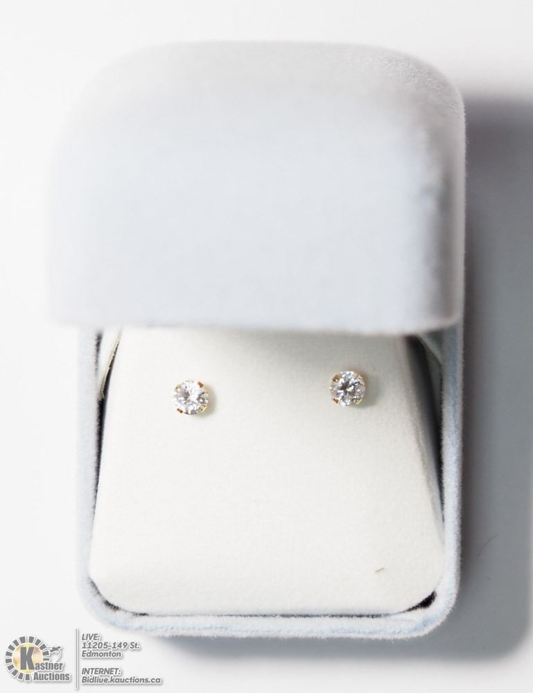 28-JP64 - 14K GOLD CUBIC ZIRCONIA EARRINGS. JEWELRY.