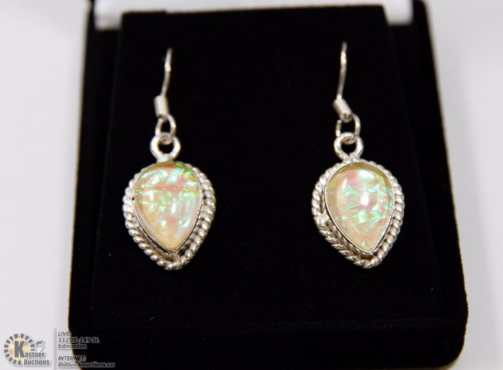 #28-AUSTRALIAN TRIPLE OPAL GEMSTONE EARRINGS