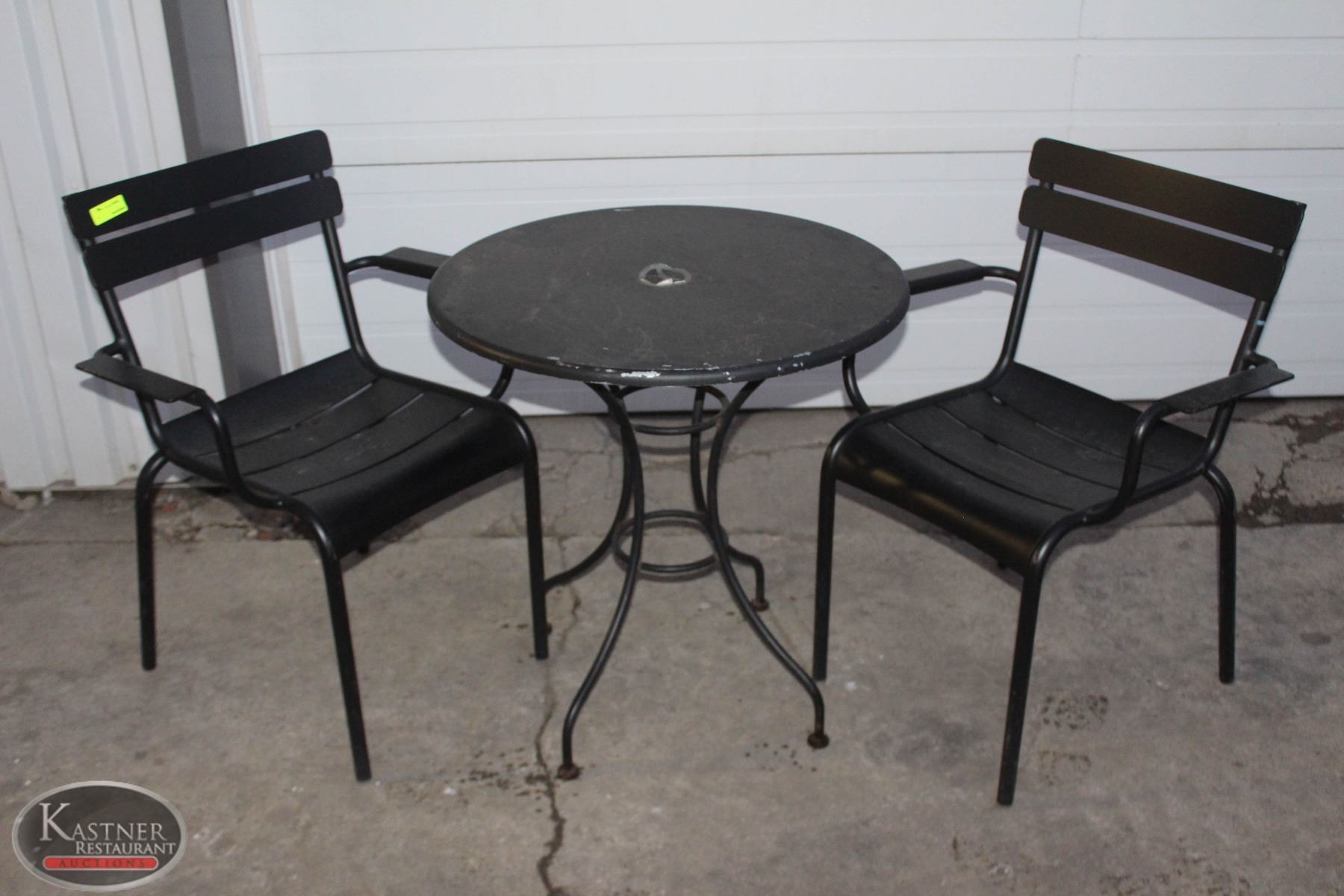 28  CIRCULAR ALL-METAL OUTDOOR / PATIO TABLE W/ 2