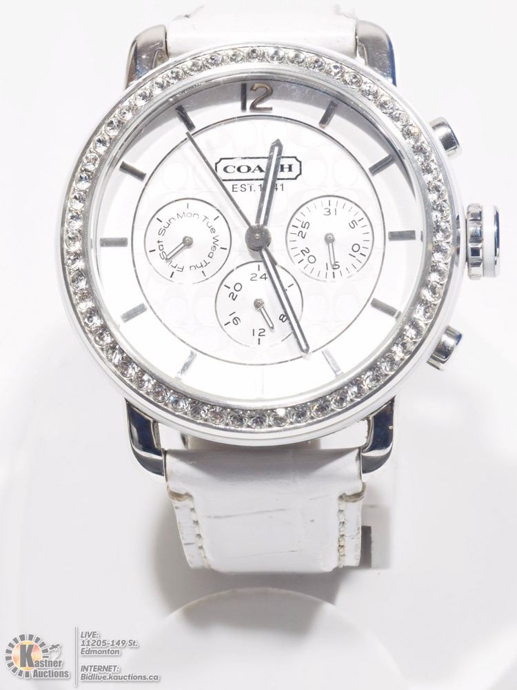 28 - MM51- COACH GENUINE LEATHER WATER RESISTANT UNISEX WATCH. JEWELLERY.